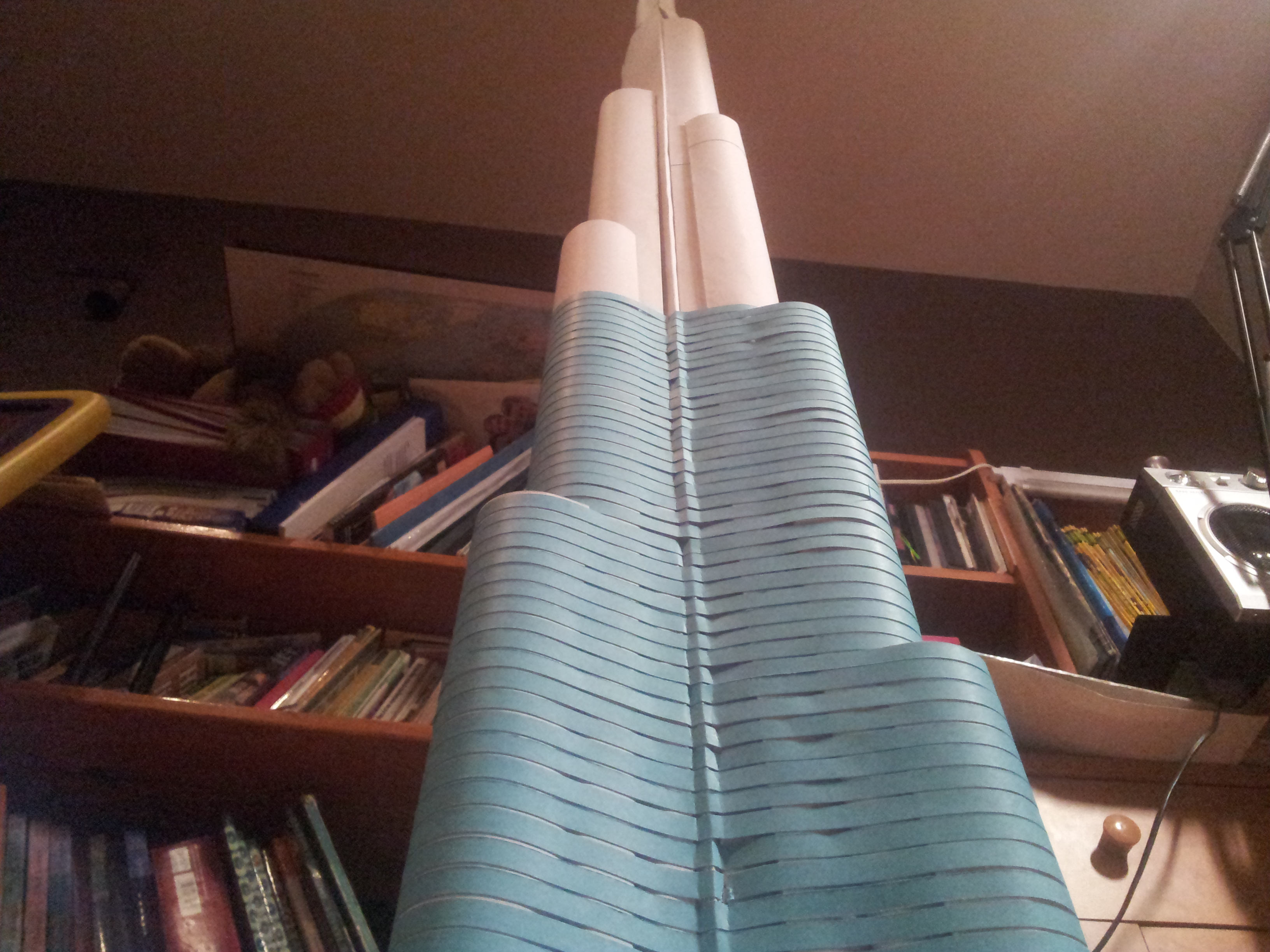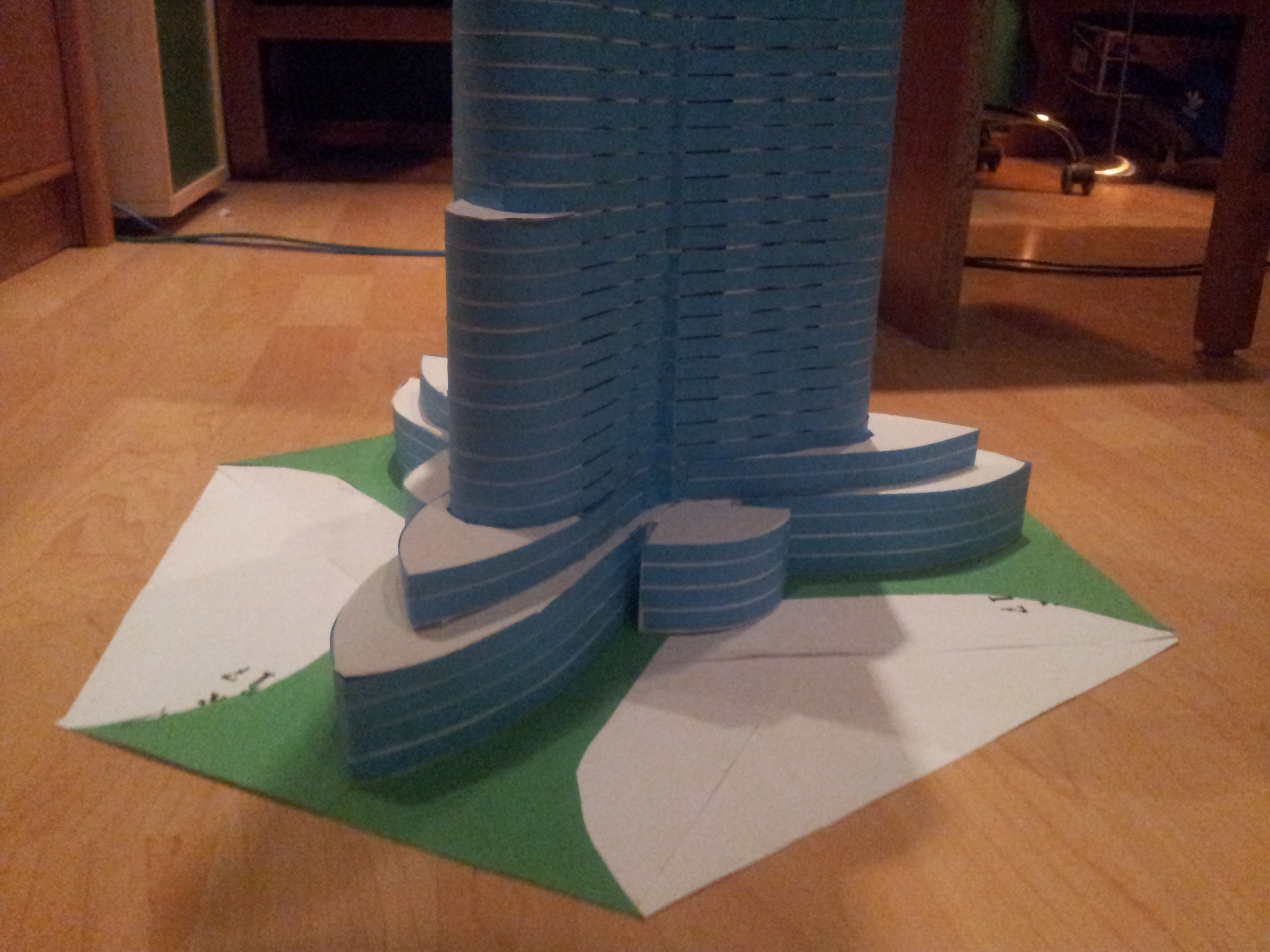 Makieta stworzona jest tym razem również z brystolu, gdyż najłatwiej ów materiał elastycznie wyginać, a przy takim kształcie budynku było to najwygodniejsze. Oklejanie nieco ponad 200 pięter 9-cio milimetrowymi paskami imitującymi szkło było nieco czasochłonne ale naprawę: WARTO BYŁO!