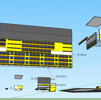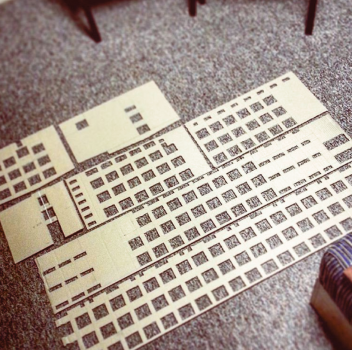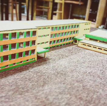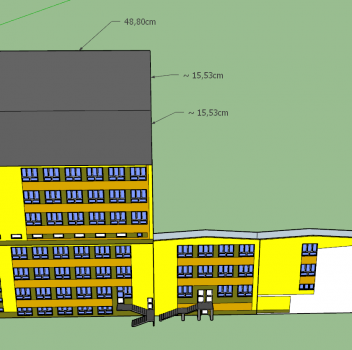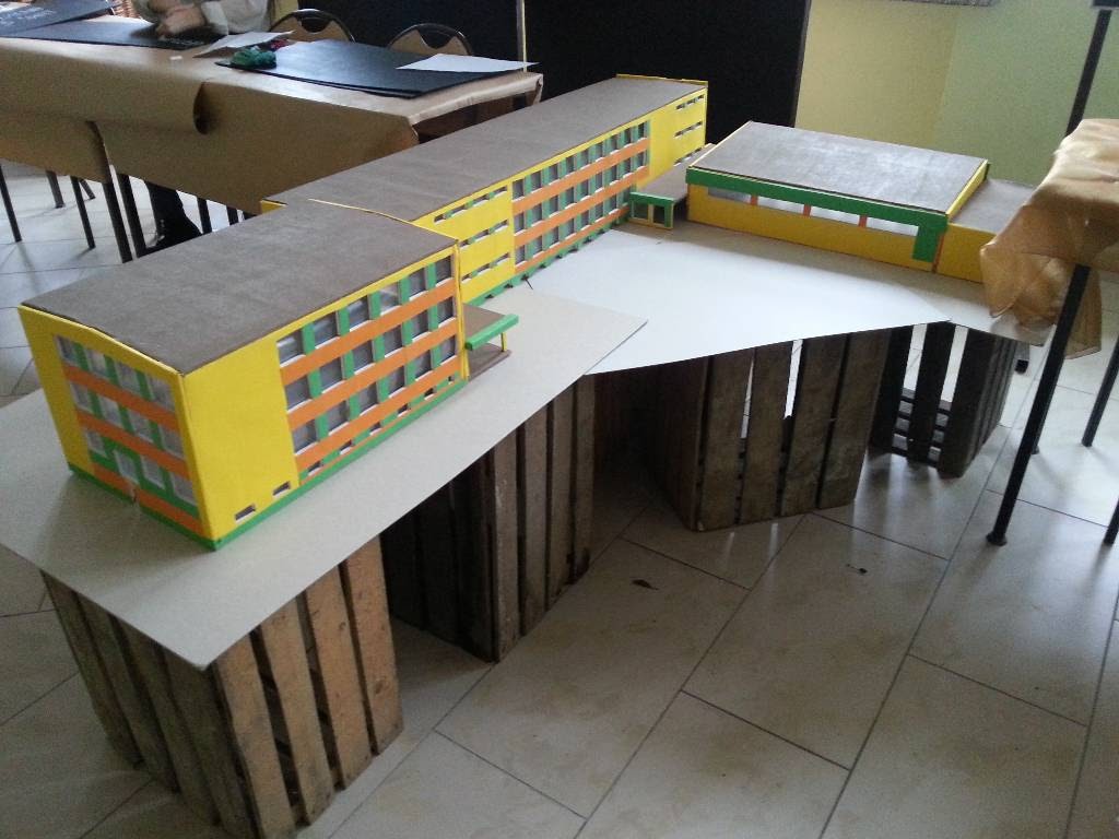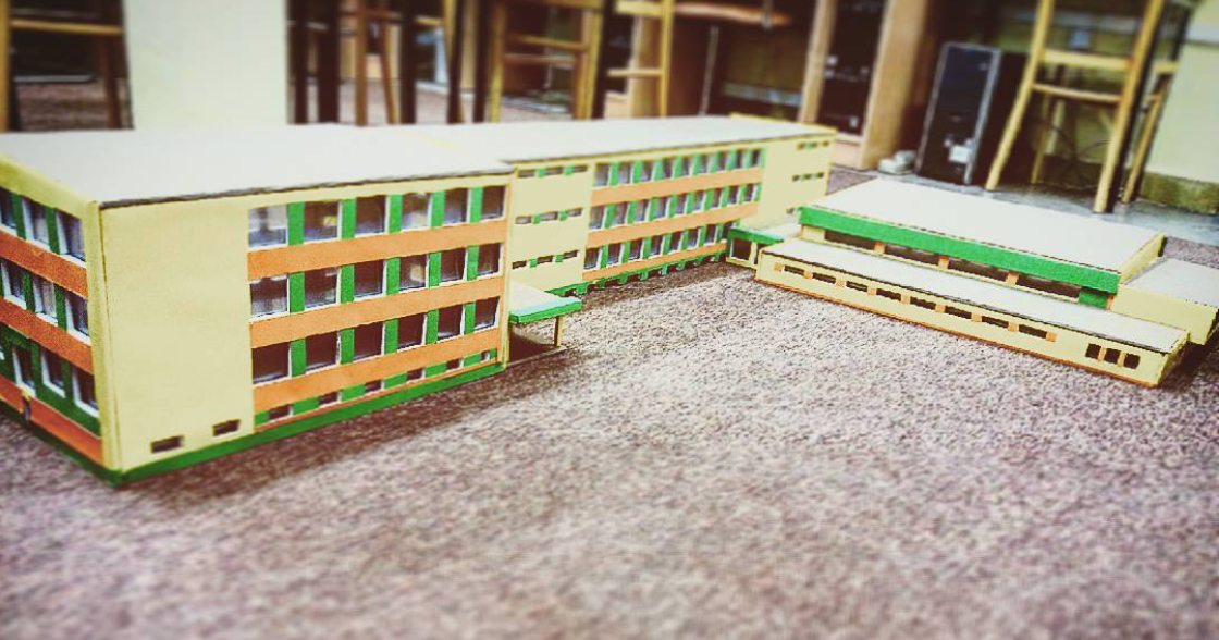 Całkiem spora makieta budynku Czwartego Liceum Ogólnokształcącego w Białymstoku, do którego zresztą miałem okazję uczęszczać. Skala 1:50 wydaje się być całkiem niewielka w stosunku do poprzednich makiet, gdzie było to 1:415 (Burj Khalifa) czy 1:200 (Cologne Cathedral) i defakto tak jest. Gdyby na przykład przyrównać skalę budynku do wspomnianej makiety katedry w Kolonii miał by on tylko 20cm. Wycinankę przygotowałem w domu sam. Następnie z ogromną pomocą kilkorga nieocenionych klasowych pomocników udało się zmieść ze składanką, wycinanką i klejonką w ciągu jednego tygodnia.