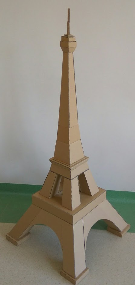 Projekt słynnej paryskiej wieży stworzonej w znanej już u mnie skali 1:200 – czyli półtorametrowy kartonowy kolos (rzeczywiste 324 m). Prosta makieta zaprojektowana w parę wieczorów na podstawie innego projektu imitującego oryginał. Jeszcze szybciej zbudowana, bo w dwa dni (łącznie ok. 5h). Konstrukcja również nieoklejona ani (co w tym wypadku dałoby ogromną różnicę) niepowycinana w kształt kratownicy. Wewnętrzna potrzeba kazała mi ją stworzyć jeszcze zanim opuszczę Liceum i tak się stało. Fotek nie ma za wiele, ponieważ w przeciwieństwie do potężnego projektu na 6 tygodni – czasu realizacji jest na tyle mało, że zdjęcia są pomijane w sposób naturalny. Dajcie jednak znać czy warto byłoby poświęcić 5 min w ciągu następnych prac na rzetelniejsze fotografowanie kolejnych etapów, czy projekt i efekt zdecydowanie wystarczą. Pozdrawiam cieplutko.